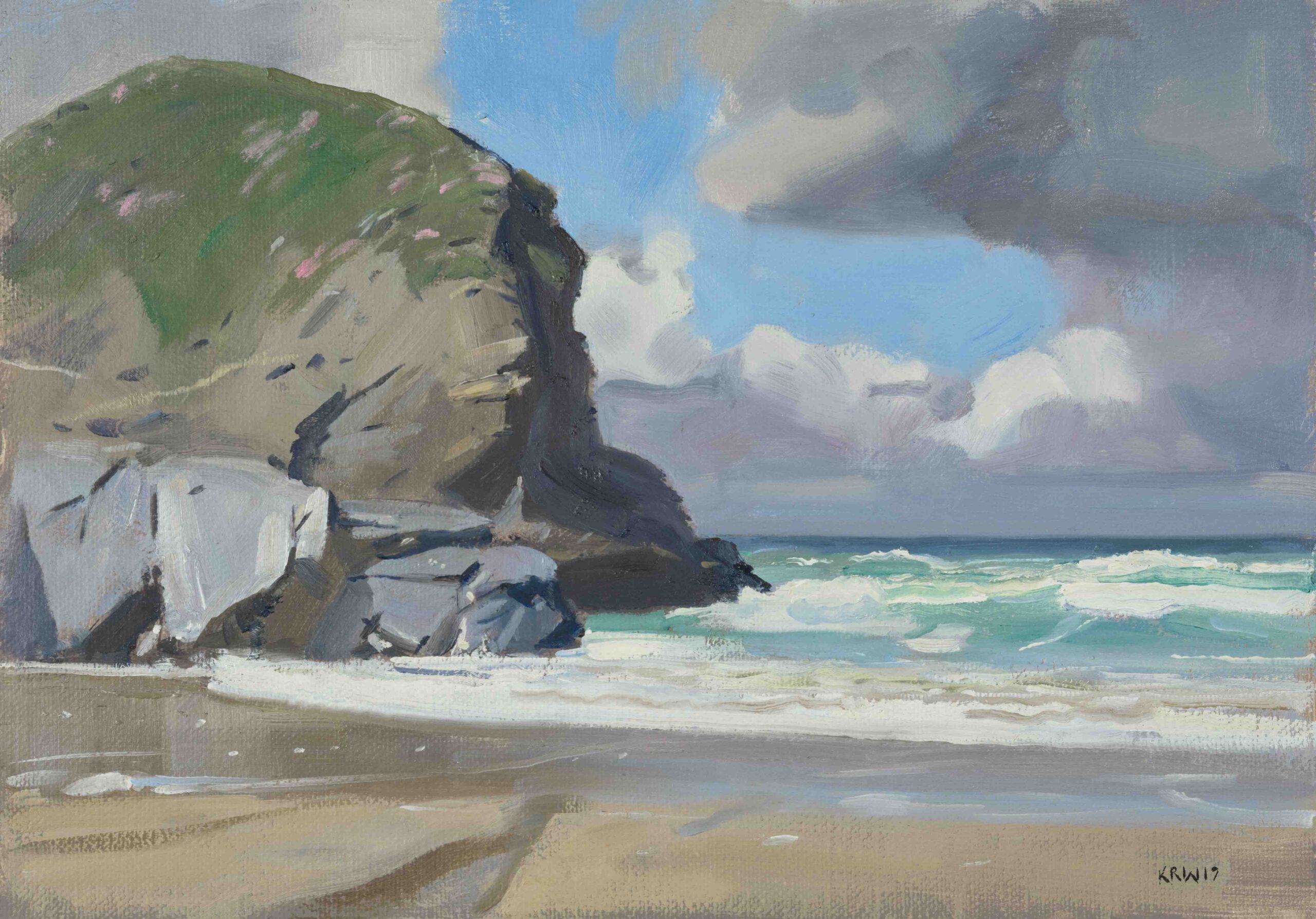 ‘I painted this with Barbara Hawkins, a local artist and friend from Cornwall, just before our trip to Venice. I distinctly remember the sounds of the waves lapping against the shore, and drinking a really nice coffee I took with me in my flask.’